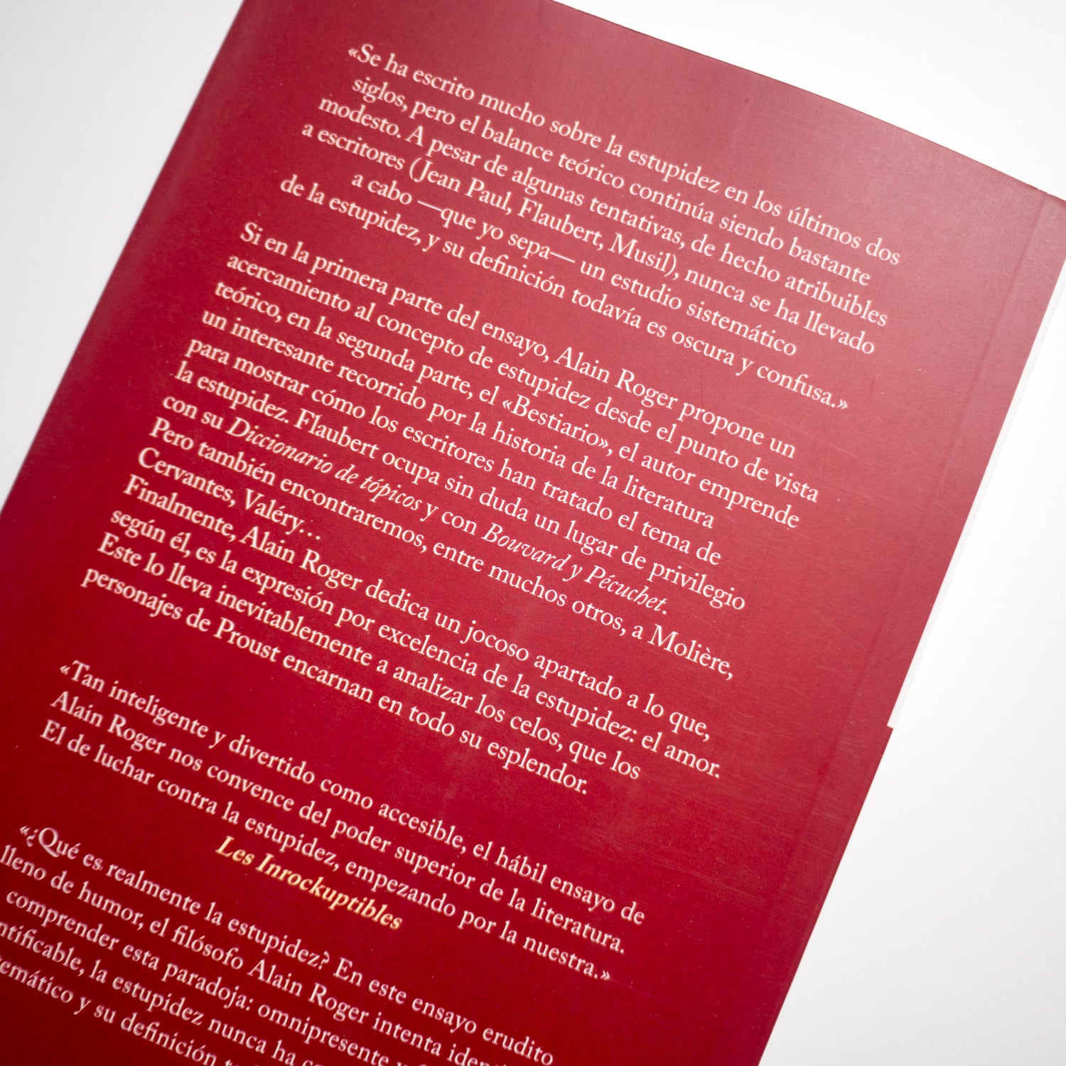 Si en la primera parte del ensayo, Alain Roger propone un acercamiento al concepto de estupidez desde el punto de vista teórico, en la segunda parte, el "Bestiario", el autor emprende un interesante recorrido por la historia de la literatura para mostrar cómo los escritores han tratado el tema de la estupidez.