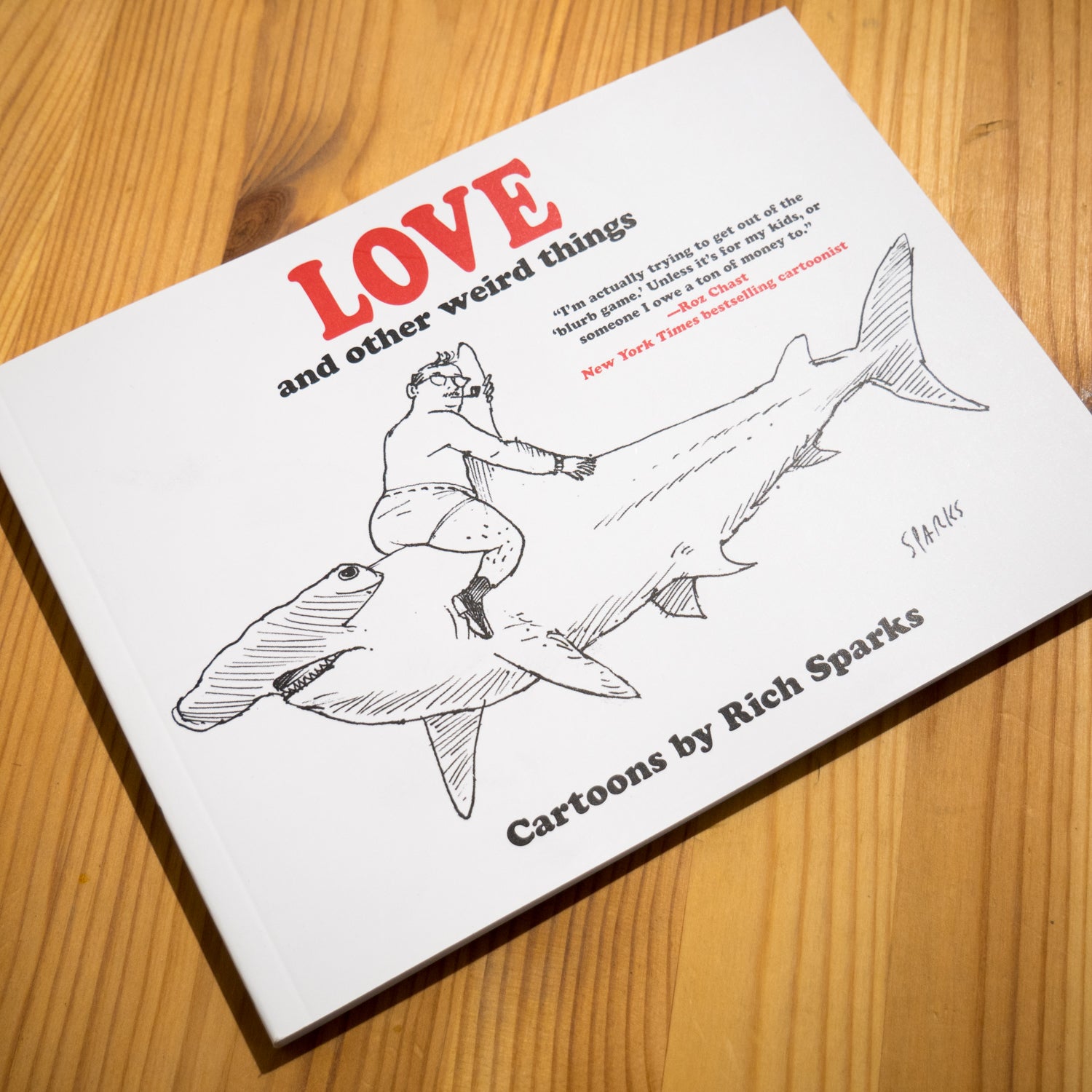 Love and Other Weird Things is a cartoon collection by the soon-to-be-household-name-if-there’s-any-justice-in-this-world Rich Sparks. The cast of characters seem innocuous enough: foul-mouthed animals, Paul Bunyan, Smokey the Bear, stout men in tighty whities. But the situations give Monty Python a run for their money. And the juxtapositions–good heavens! Sparks has been published in the New Yorker, the Wall Street Journal, and many other publications. Now he breaks out on his own with approximately 150 bizarre but sweet(ish) but, no seriously, really bizarre, but also really funny cartoons.