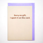 Tarjeta "Sorry no gift, I spend it on the card"