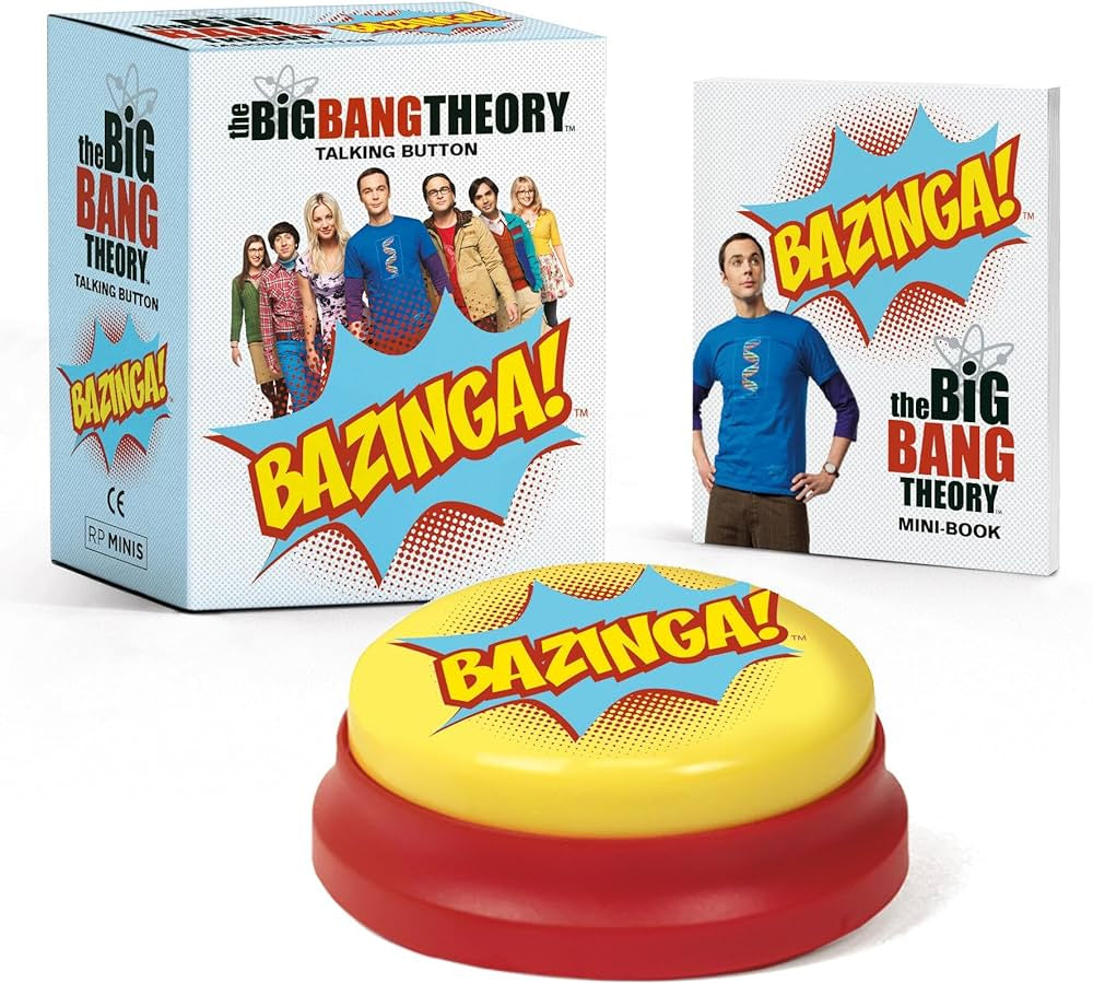 Celebrate your love of The Big Bang Theory with the official talking button featuring one of its most iconic phrases: Bazinga! * SPECIFICATIONS A 3-inch collectible talking button that features Sheldon's saying his signature phrase: Bazinga! * MINI BOOK INCLUDED: Learn about the history behind this popular phrase with this 32-page miniature book complete with full color photographs from the show * PERFECT GIFT FOR BIG BANG THEORY FANS: Keep within arm's reach on shelf, desk, or bookcase to deliver the perfect 'Bazinga!' for you and your friends * OFFICIALLY LICENSED: Authentic The Big Bang Theory collectible THE BIG BANG THEORY and all related characters and elements © & ™ Warner Bros. Entertainment Inc. (s22)