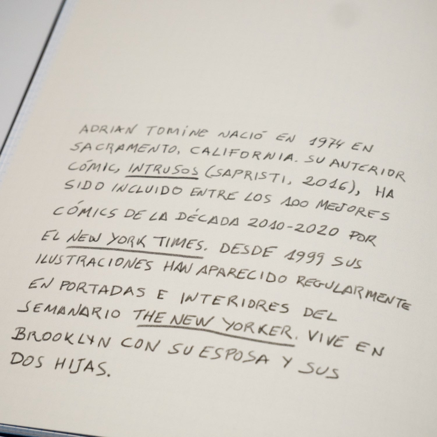 «Imposible dejar de leer. La vulnerabilidad y la voluntad de Tomine por compartir los momentos más embarazosos de su vida nos recuerdan que tenemos que ser más valientes, porque ¿qué tenemos que perder?.» Lisa Hanawalt, autora de Coyote Doggirl