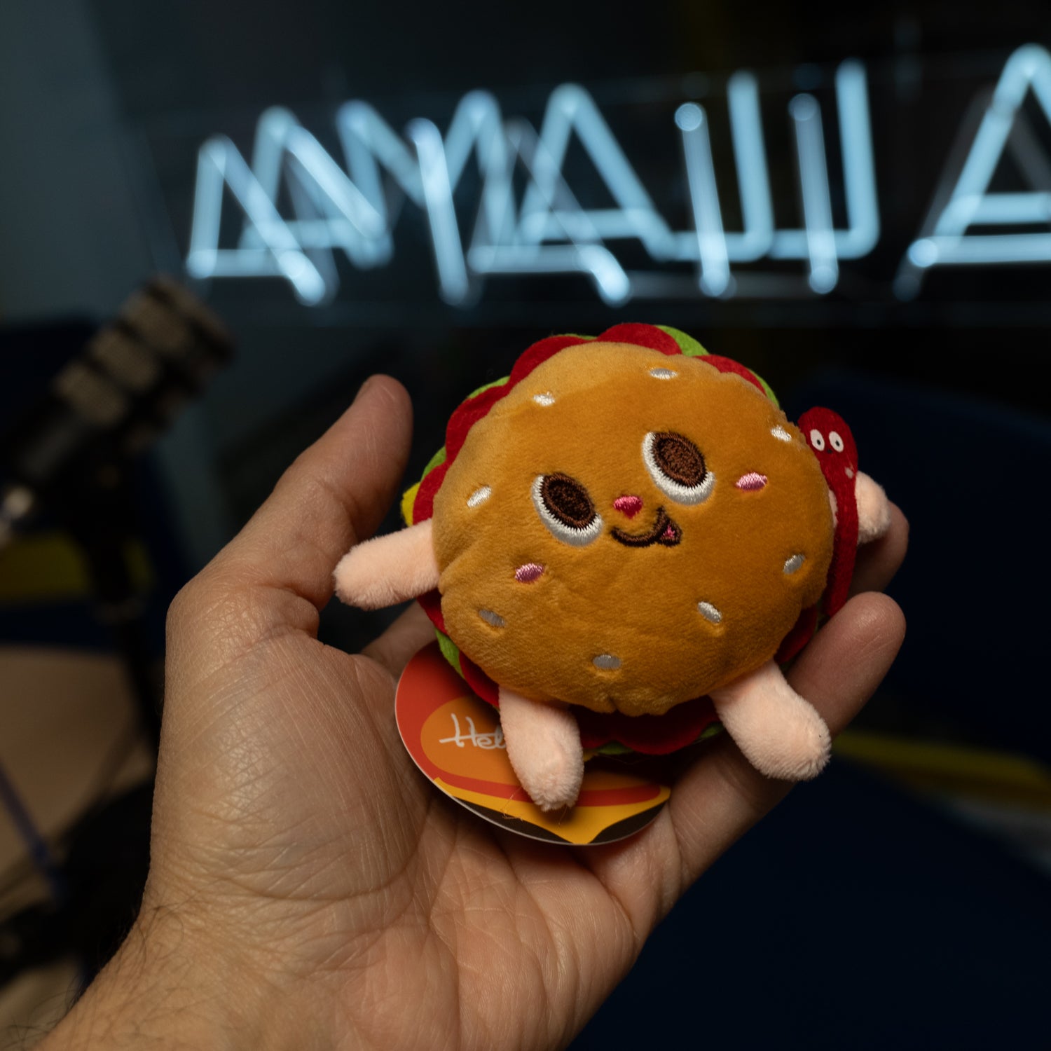 Llavero de peluche en forma de burger, tan suave como divertido.