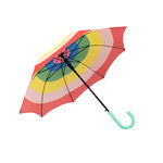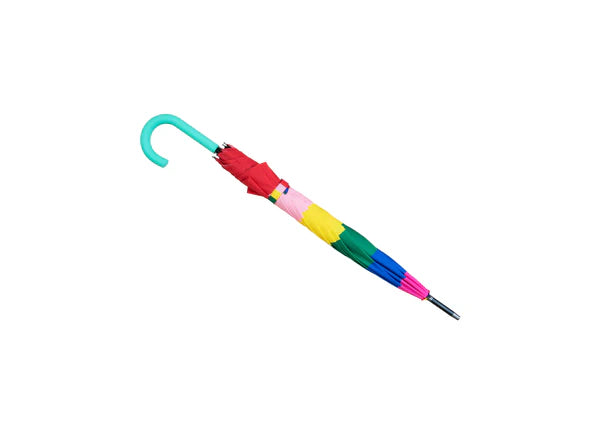 Cuando llueve suele estar el cielo muy gris, pero este paraguas tiene los colores del arcoiris. Protege de la lluvia y da ambiente.