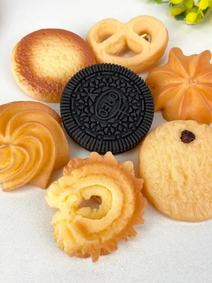 Galletas realistas, tamaño galleta, que son pinzas para el pelo. Parecerá que estás usando una galleta para recogerte el pelo. Parecen galletas de verdad, así que queda muy curioso. Y también da hambre, ojo.