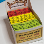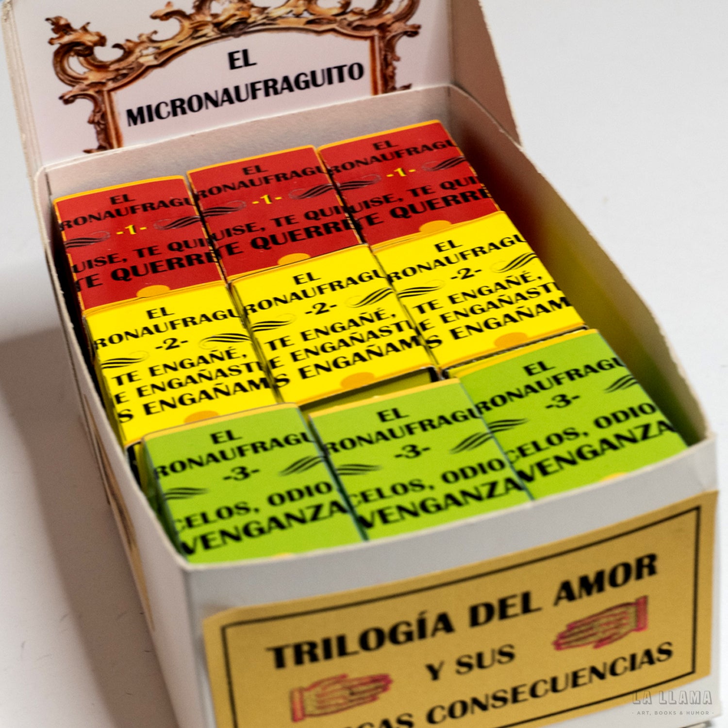 Esta primera edición inaugural lleva el sugestivo título "Trilogía del Amor y sus Trágicas Consecuencias" y se compone de tres cajitas, con tres micronaufraguitos cada una, tituladas: