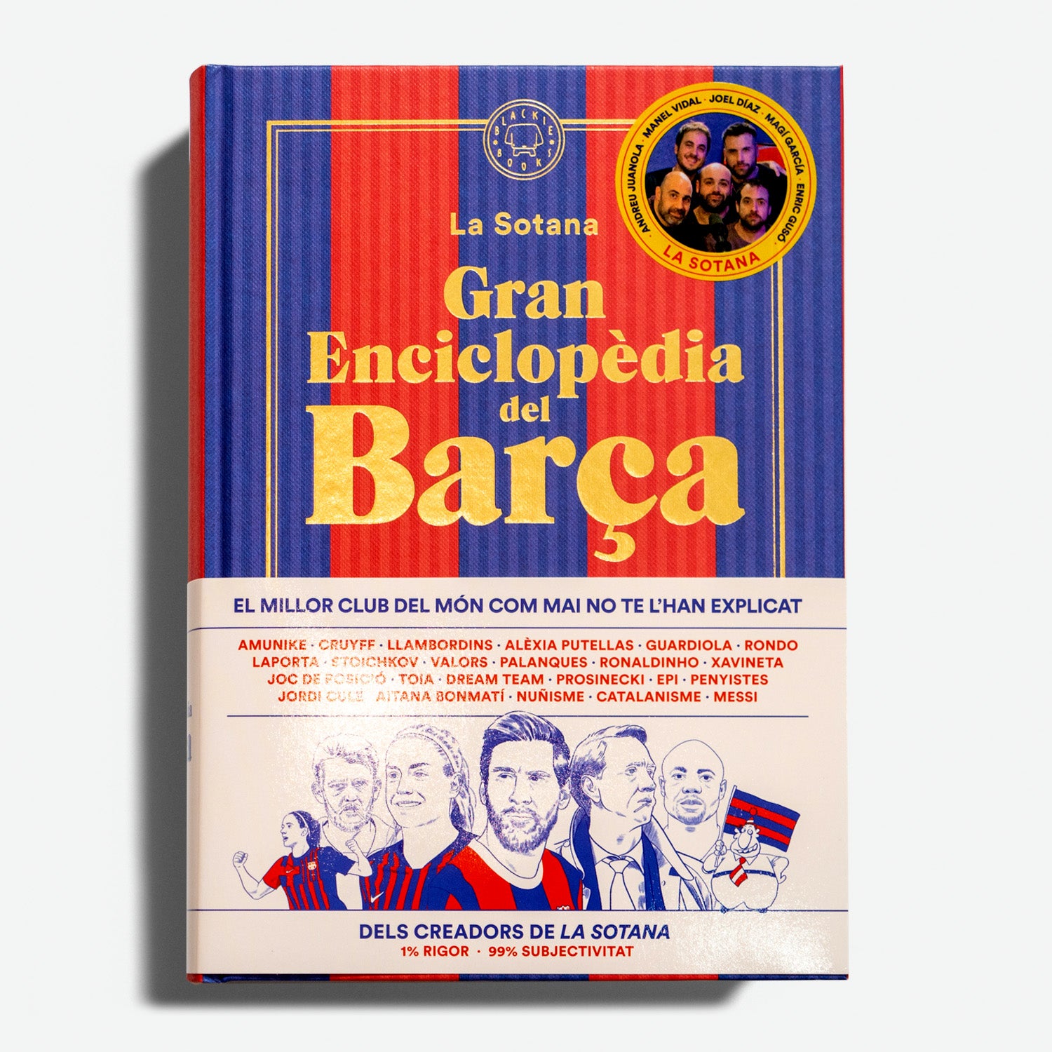 Una extensa enciclopèdia il lustrada, que reuneix les personalitats i els conceptes claus de la història del Futbol Club Barcelona. Des de Gamper fins a Alexia Putellas, passant per Stoichkov, Cruyff o Amunike. De la màgia de Messi a la misèria del bartorosellisme. Presidents mafiosos, fitxatges delirants, remuntades èpiques, enemics mortals, nits màgiques, un deu i una religió plena de tarats.