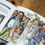 No sé por dónde empezar. ¡Cómo dibuja este cabrón! ¡Qué historia más potente y majaretosa! ¡Cuánta verdad vestida de parodia! Abra la puerta a un tebeo de esos que releerá varias veces completo, que acudirá para rememorar pasajes puntualmente y que comentará con deleite con quienes también hayan libado de él. ¿Qué se dice?. Gracias. De nada.