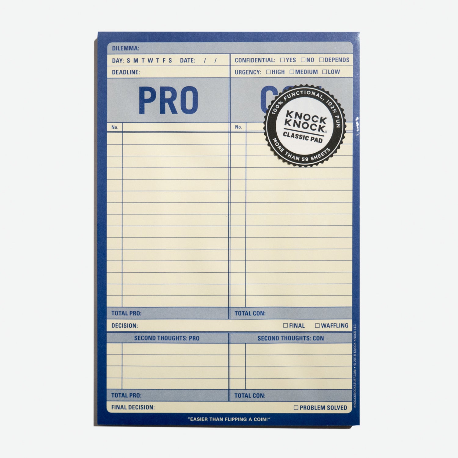 La decisión de tomar decisiones es una de las más difíciles de tomar, pero el bloc de notas PRO-CON es de las más sofisticadas tecnologías en el desarrollo de toma de decisiones desde que se inventó el lanzamiento de moneda.