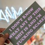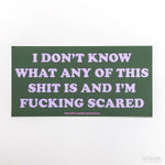 Pegatina vinilo "I don't know what any of this shit is and I'm fucking scared"