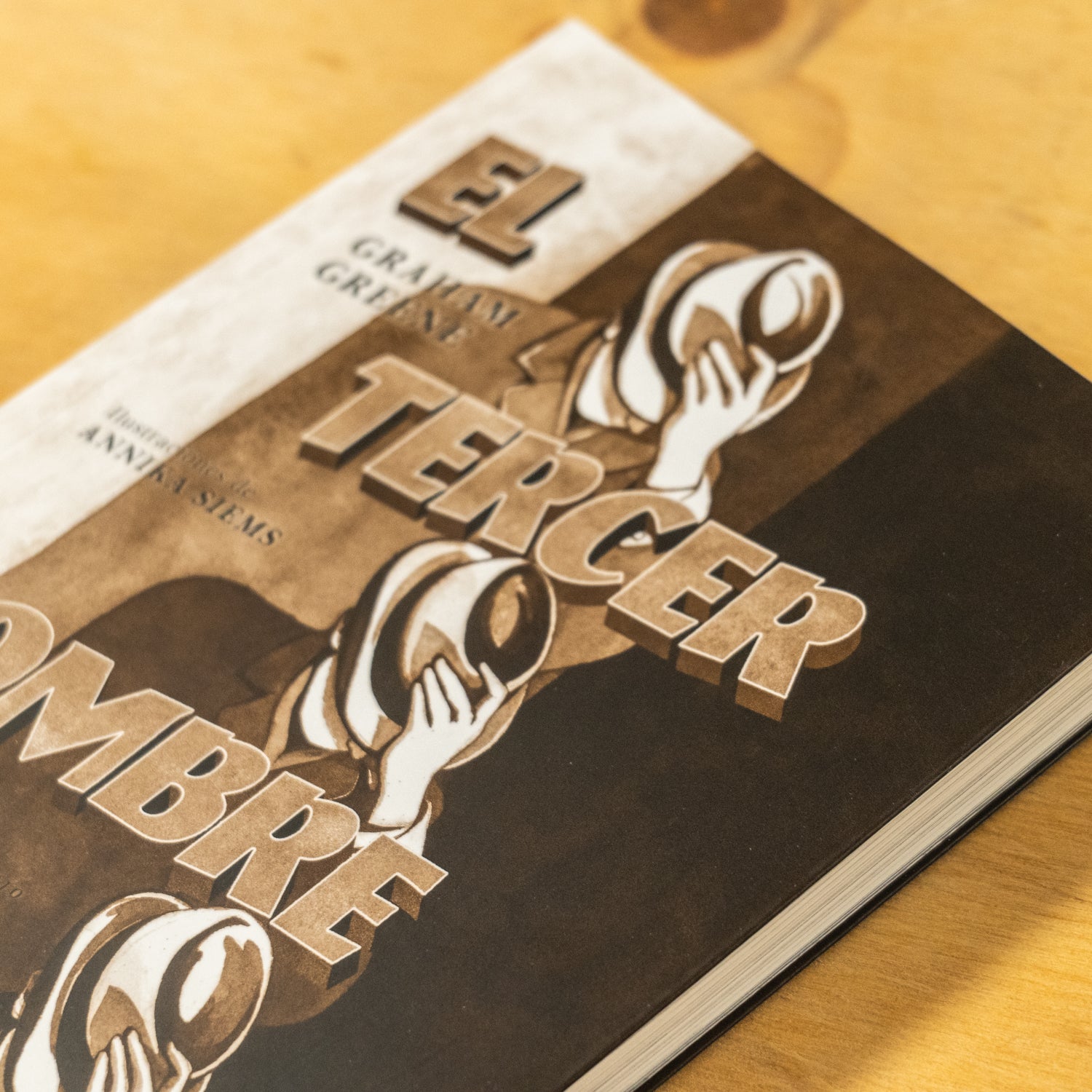 La ilustradora Annika Siems consigue recrear la atmósfera de la célebre adaptación cinematográfica, acompañando la novela de Greene de un sugerente juego de luces y sombras ejecutado con acuarelas. El telón de fondo ideal para el siniestro y apasionante juego de escondite entre Martins y el escurridizo «tercer hombre».
