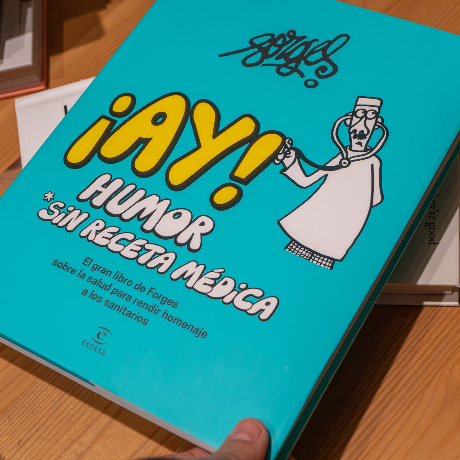 ¡Ay! Humor sin receta médica es un desternillante homenaje a todo el sector sanitario, incluyendo al resto de personal de limpieza, cocina, mantenimiento, administración... En este nuevo libro, Forges retrata desde la ternura y la irreverencia a pacientes, profesionales y a todos aquellos que velan por nuestra salud.